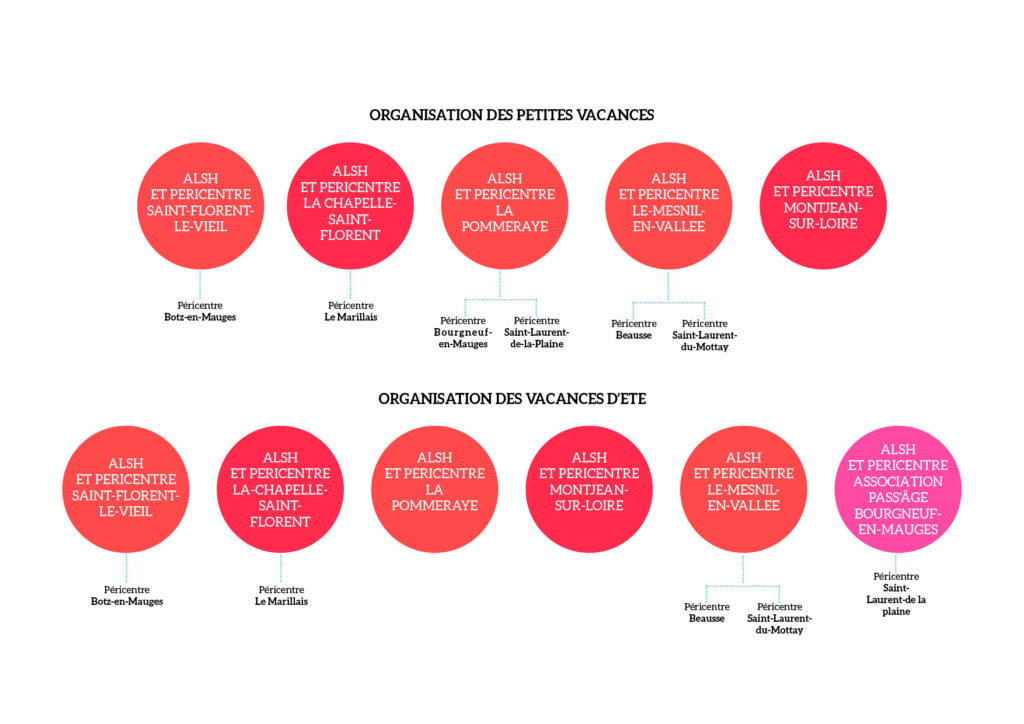 Mauges-sur-Loire s’est fixé l’objectif de développer une offre de proximité pour permettre aux familles d’avoir une solution d’accueil au plus près de chez elles, pour les mercredis et pendant les petites et grandes vacances. Ainsi, depuis 2018, chaque commune déléguée a un péricentre. Le péricentre accueille vos enfants avant et après la journée au centre de loisirs, soit :