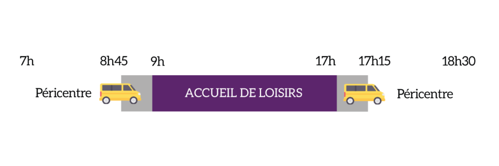 A l’ouverture et à la fermeture du centre de loisirs, la commune prend en charge le transport amenant les enfants du péricentre à l’accueil de loisirs et inversement.