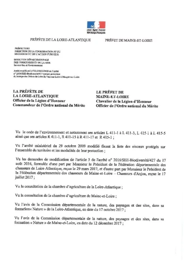 Arrêté préfectoral de protection du biotope – Grèves de Loire
