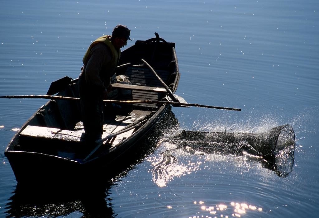 Un pêcheur de Montjean-sur-Loire sur une barque