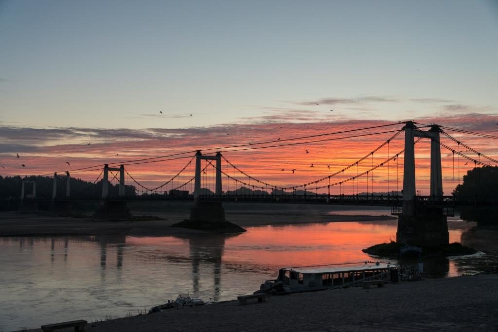 Le pont de Montjean-sur-Loire au coucher du soleil