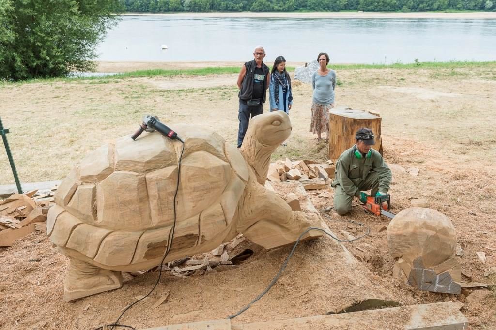 Symposium de sculptures monumentales de Montjean-sur-Loire, sculpture en bois d'une tortue géante
