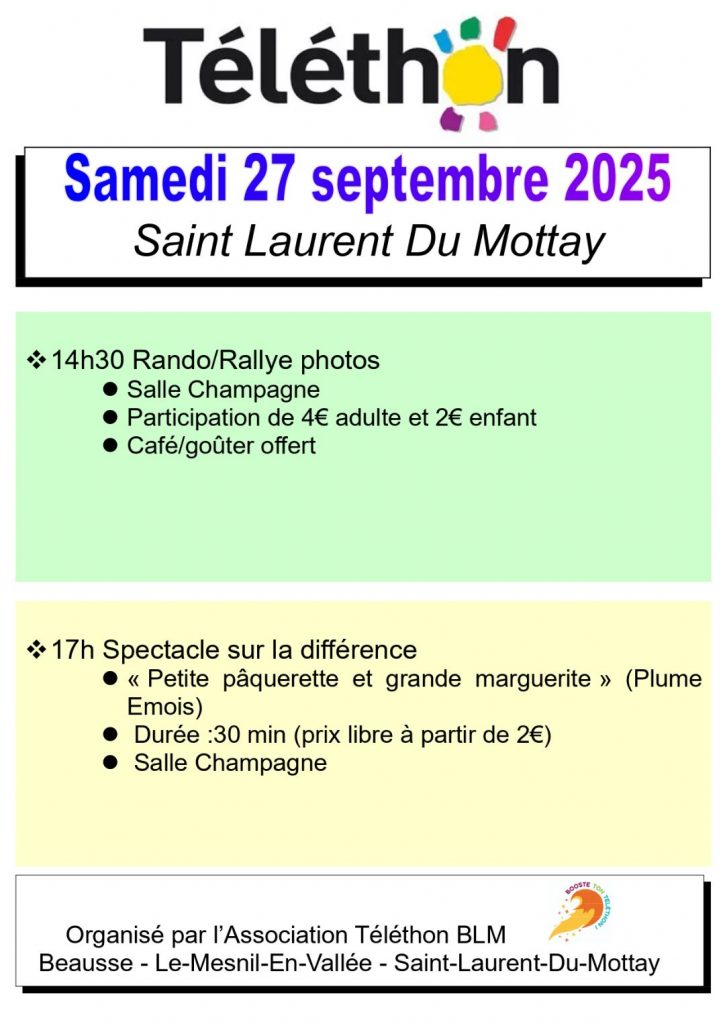 L’association Téléthon Beausse, Saint-Laurent-du-Mottay, Le-Mesnil-en-Vallée organise en 2025 : 3 événements !