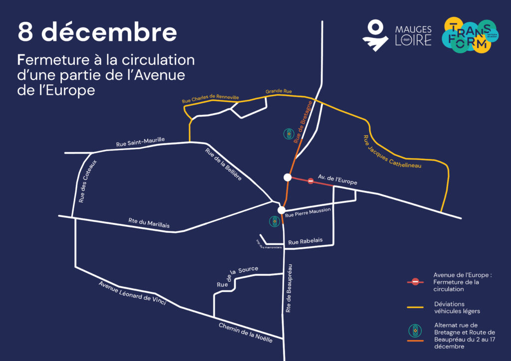- Phase 2 : du 13 janvier au 31 mars 2025 : travaux sur les rue de Bretagne et avenue de l’Europe avec la création d’un giratoire.