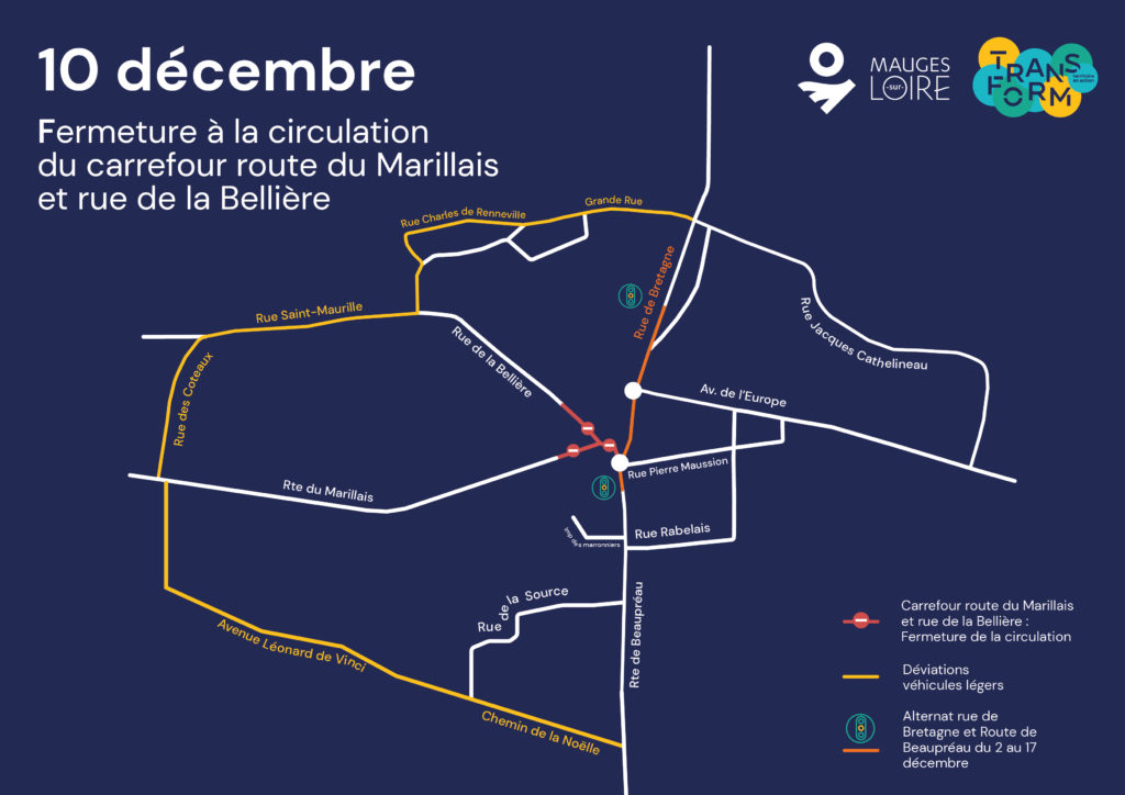 - Phase 4 : fin-mai – fin juillet : création du nouveau giratoire côté route de Beaupréau